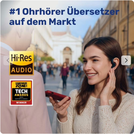 Setzen Sie sie in die Ohren und sprechen Sie. Die Kopfhörer übersetzen Ihr Gespräch in Echtzeit.